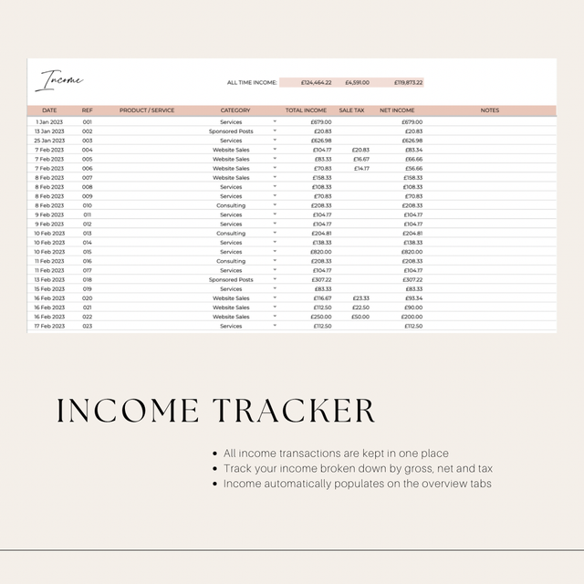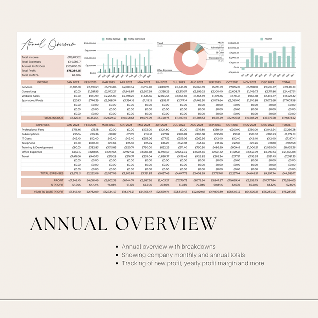 Take control of your finances with our Income & Expenditure Tracker, designed by a professional bookkeeper to help you easily track income, expenses, and savings. This tool offers both monthly & annual overviews, making budgeting and tax planning a breeze. Whether managing personal finances or a small business, it's the perfect solution to stay organised.